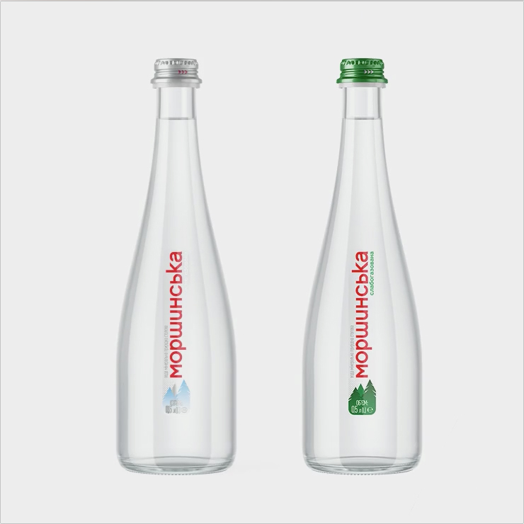 Моршинська у склі має три формати — 0,33, 0,5 та 0,75, колір кришки – підкаже рівень газації води: зелений – слабогазована, срібна — негазована.